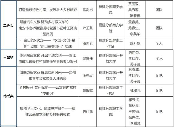 国家开放大学“教育部‘一村一名大学生计划’”学生优秀创新创业案例评选活动获奖名单