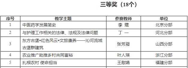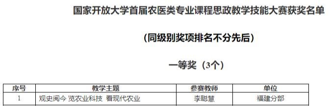 国家开放大学首届农医类专业课程思政教学技能大赛获奖名单