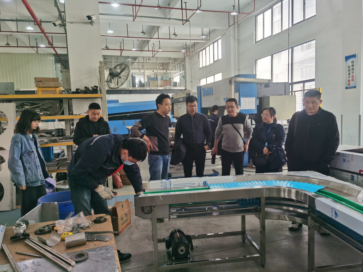 在前期福建庆和厨具设备有限公司总经理陈永波率公司技术骨干到校走访调研的基础上,为进一步深入开展校企产学研合作,3月8日下午,机械工程系主任何国辉与电气工程系主任李锦带队前往福建庆和厨具设备有限公司开展现场调研,公司厂长邓增坚及相关技术人员热情接待。