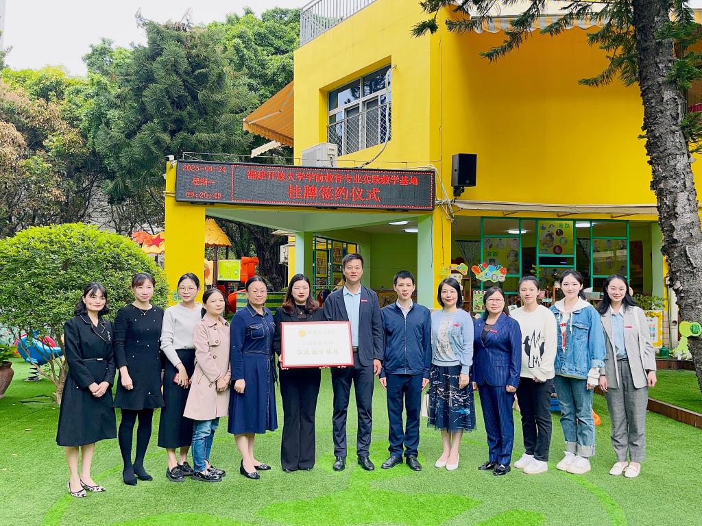 为了深化人才培养实践教学环节改革,4月24日上午,公共管理学院院长张海、副院长李瑞中、系主任李金艳携教师代表赴福建省直属机关幼儿园古田村分园进行实践教学基地签约与挂牌仪式。幼儿园分管部门领导、福建省离休干部休养所所长王相玉出席本次仪式。