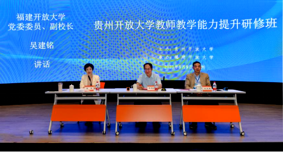 5月9日上午,由我校承办的贵州开放大学教师教学能力提升研修班在左海校区举行。福建开放大学党委委员、副校长吴建铭,贵州开放大学开放教育事业部副主任蔡昆出席开班仪式并讲话,贵州开放大学各分校、学院及其下属学习中心一线教师、教学教务管理人员53人参加开班仪式。开班仪式由培训学院院长江克英主持。