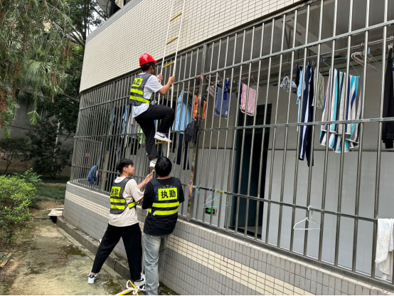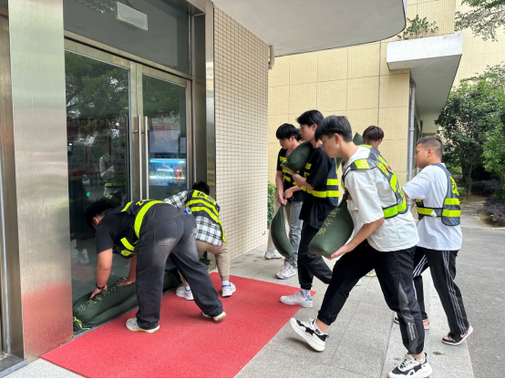演练前,学生科制定防汛应急疏散演练的实施方案,预设台风、强降雨直接冲进学生公寓,大量雨水漫灌进宿舍,学生被困公寓无法逃脱,严重威胁校园安全的紧急险情为处置场景,现场模拟突发灾情,进行了防汛抢险实战演练。