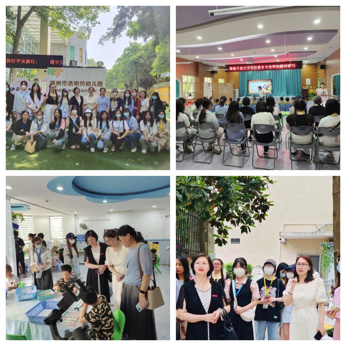 5月25日,继续教育学院副院长陈秀清,公共事业与教育系主任李金艳带领成人本专科学前教育专业学生二十余人前往福州市丞相坊幼儿园开展学前教育专业见习活动,旨在增强学生专业意识,培养学生对理论知识的应用能力,提高学生保教能力和职业素养。继续教育学院青年教师代表参加活动。
