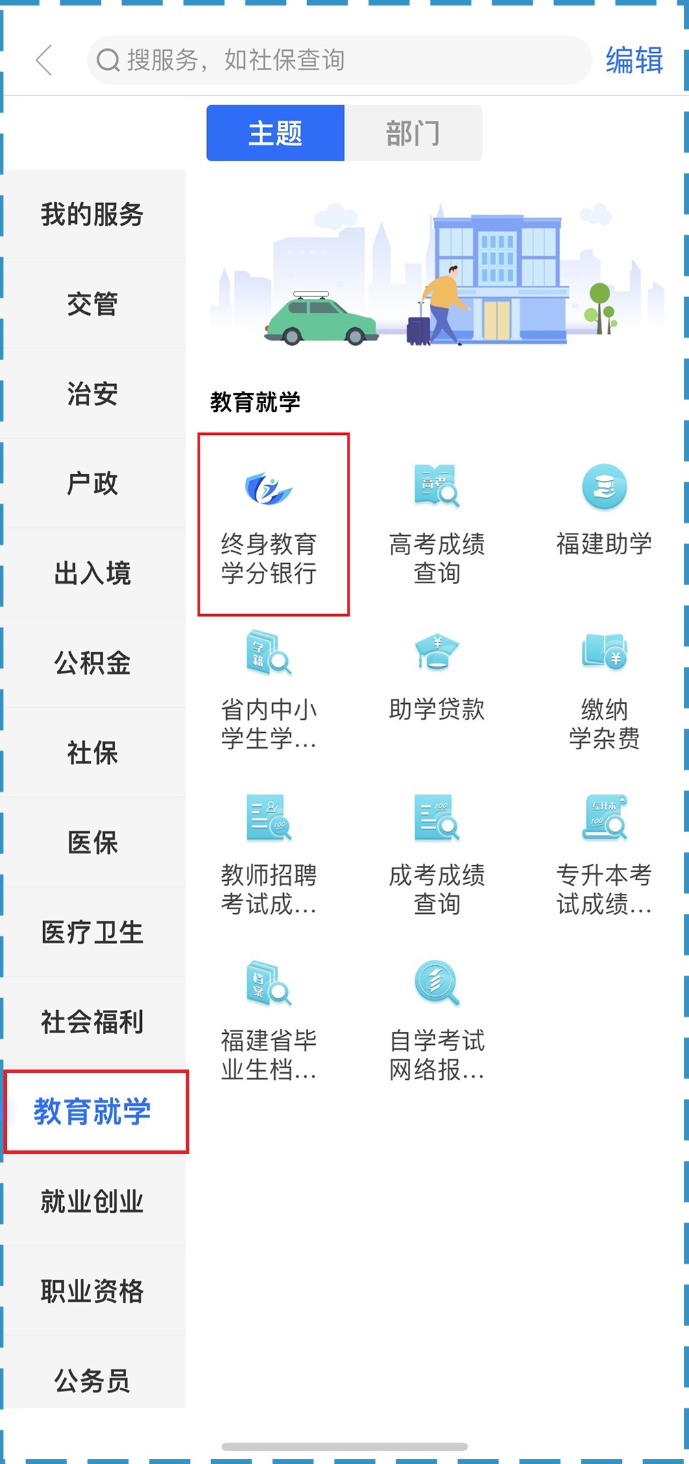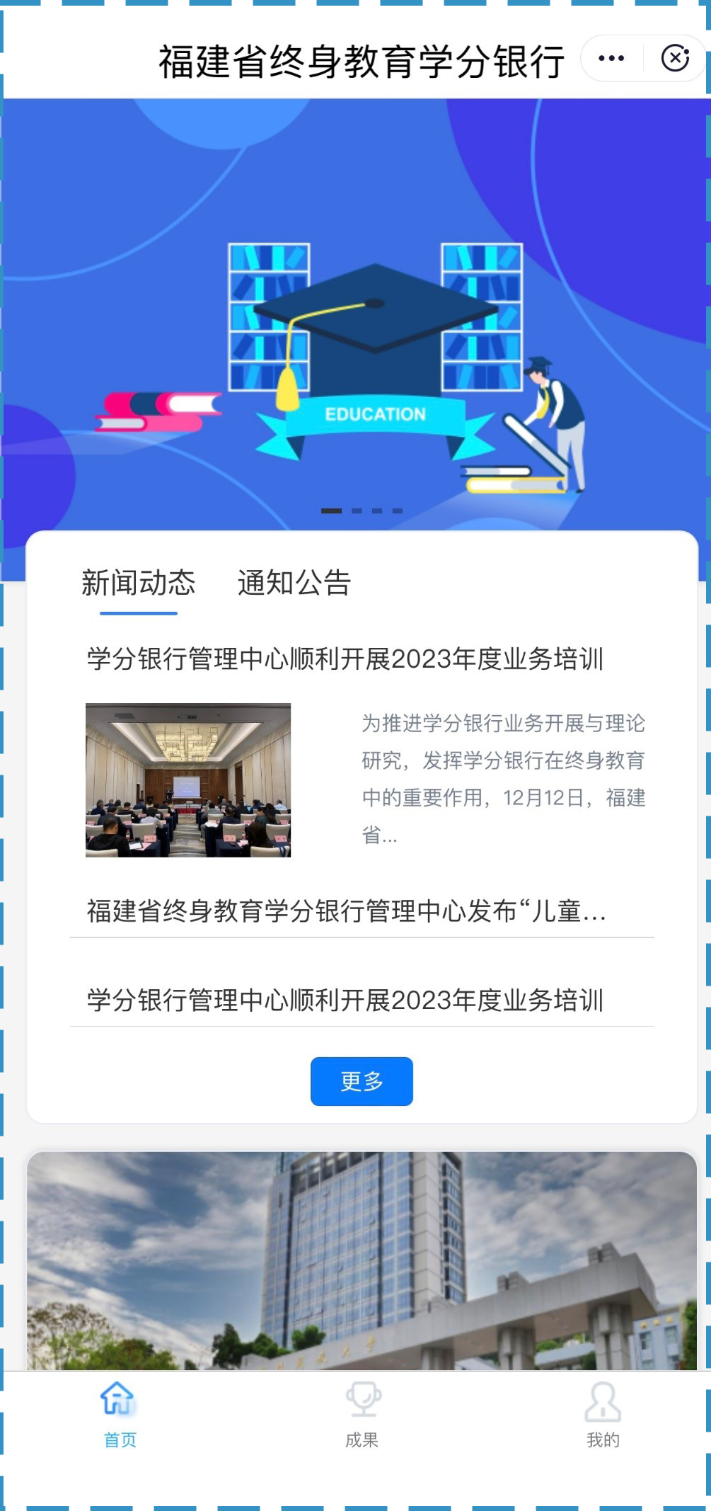 日前,福建省终身教育学分银行应用顺利完成“闽政通”APP的适配工作,正式在闽政通上线运行。用户登入闽政通,进入“教育就学”专区或者直接搜索“学分银行”,经过个人授权激活后,就可以使用学分银行提供的各类服务。本次学分银行接入闽政通是学分银行支持数字政府建设、服务全民终身学习的重要举措。