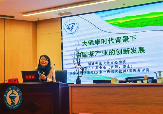 12月21日下午,刘海波博士以《台湾问题与祖国统一》为题,从“台湾自古是中国领土、台湾问题的出现和实质、祖国统一的政策沿革”等几个方面进行深入分析,并重点梳理了自1980年以来中国在台湾问题大政方针、始终坚持的原则立场以及台湾当局四十多年来的所作所为。12月26日下午,蔡颖华博士以《沈从文文学经典化研究的再思考》为题,从沈从文经典作品《边城》的经典化历程谈起,阐析了二十世纪八十年代“沈从文热”作为其文学经典化必经途径,所呈现出的“文化熟知化”内涵,并探讨了当下文学经典化研究的现状和趋势。12月28日下午,吴全金博士以《大健康时代背景下中国茶产业的创新发展》为题,从茶为国饮、科学饮茶、饮茶健康等多个角度,进行了深入剖析。吴全金深入挖掘了在当前三茶统筹背景下,茶产业在文化传承、科技创新和健康领域所取得的显著成果。同时,她针对茶叶中所含的健康成分,详细介绍了各类茶叶独特的健康功效,为科学饮茶、饮茶养生提供了坚实的科学依据。