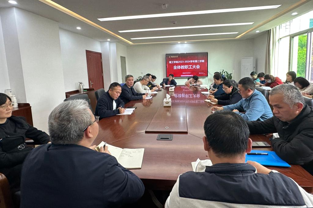 3月5日下午,理工学院在综合楼三楼会议室召开2024年第一次全体教职工大会,会议由院长雷乃旺主持。