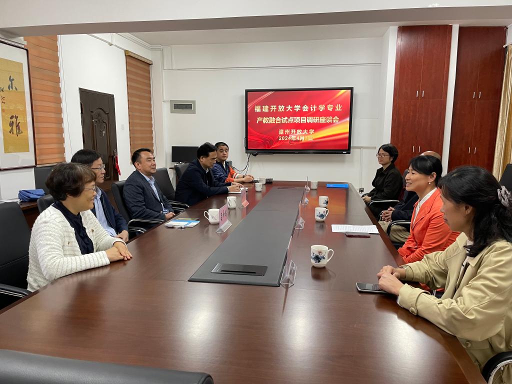 在漳州开放大学,校党委书记、校长詹志灵,副校长吕峰鹏,教学部门负责人以及会计专业负责人、教师参加调研座谈会。座谈会上,王芳介绍我校承担国家开放大学产教融合协同育人试点建设项目的意义以及建设的目标,并对漳州开放大学会计团队积极参与项目的研究予以肯定,希望能够借助产教融合项目促进我省会计专业的内涵建设以及人才培养质量的提高。随后,漳州开放大学相关负责人介绍学校在专业建设、提升专业教学质量以及对会计学产教融合项目的探索与思考。双方就会计学专业人才培养方案、产教融合项目的工作设想等进行充分的交流,并对实训基地的建设、实训教材的开发以及校企合作授课等教学改革举措交换了意见。