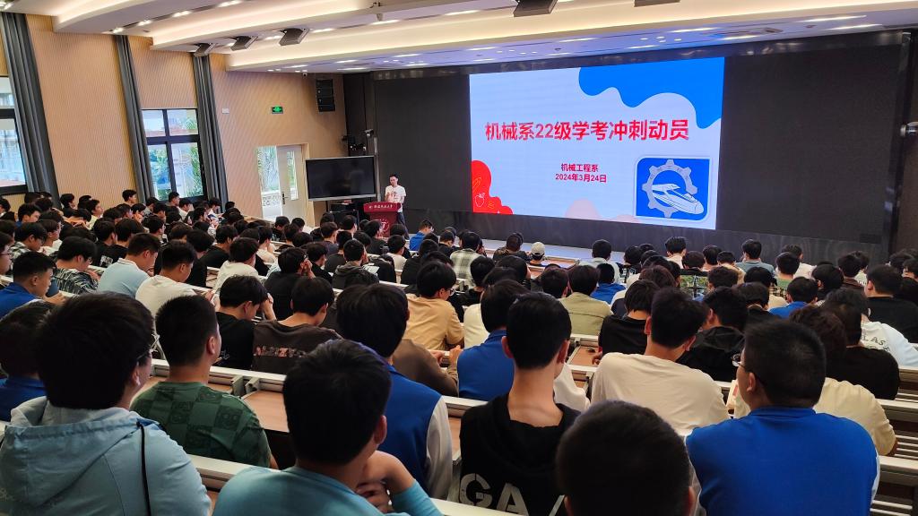 5月15日下午,职业学院机械工程系于智慧教室举行2022级学生学考冲刺动员大会。此次大会由系部学生管理工作负责人谢友奇主持,2022级机械系全体学生参加会议。