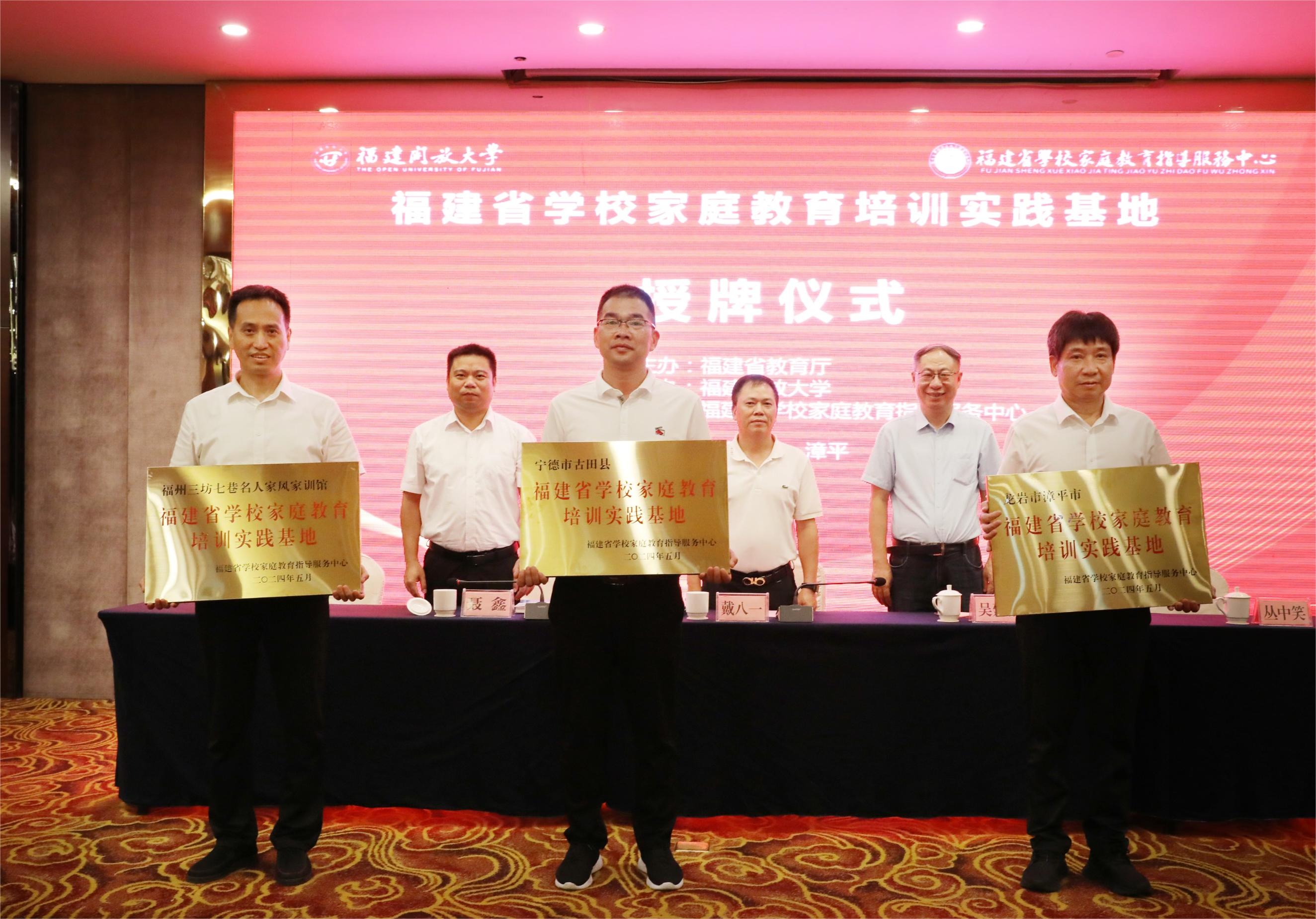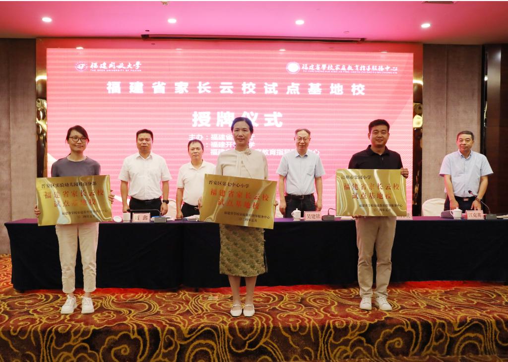 福建省学校家庭教育指导服务中心为福建省学校家庭教育培训实践基地、福建省家长云校试点基地校进行授牌,为福建省学校家庭教育专家智库成员颁发聘任书。