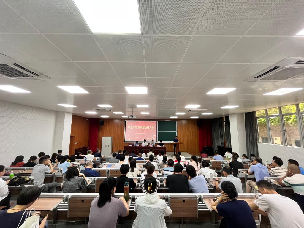 8月31日上午,职业学院于阶梯教室召开2024-2025学年第一学期动员大会,学院班子成员就分管业务范围总结上学期及暑期工作,并安排部署新学期重点工作。大会由党总支书记吴宁晖主持,全体教职员工共同出席。