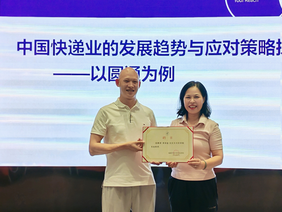 在教育与产业深度融合的大背景下,文经学院积极推进校企合作,邀请行业专家走进课堂,为学生带来最前沿的行业知识和实践经验,9月13日上午,福建省快递行业协会秘书长、福建圆通速递福州分公司总经理李学国为文经学院邮政快递专班和新业态劳动者专班学生带来了一场别开生面的开学第一课。