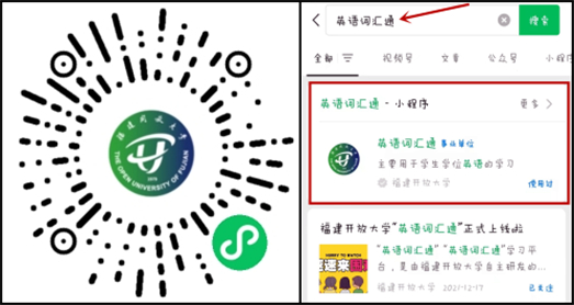 扫描小程序码(或微信搜索“英语词汇通”)登录使用小程序