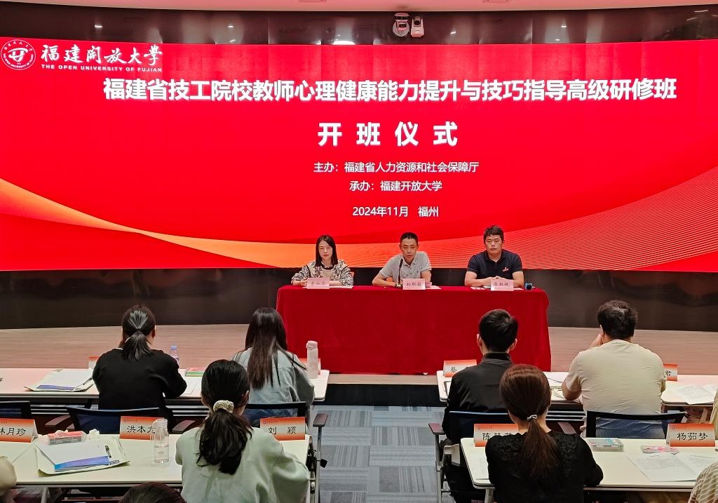 11月11日,根据上级文件精神,受福建省人社厅委托,我校承办福建省技工院校教师心理健康能力提升与技巧指导高级研修班。来自全省技工学校(院)的30余名教师在学校左海校区智慧教室参加开班仪式。