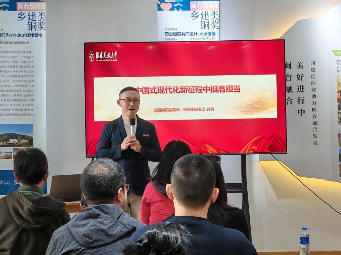校团委副书记、文经学院副院长许勇以《在中国式现代化新征程中挺膺担当》为题,为参与培训的学生骨干讲思政课。他向同学们宣讲了习近平总书记来闽考察重要讲话精神,带领大家回顾了党的十八大以来,习近平总书记重视关心福建高质量发展,三次到福建考察调研,为福建擘画“机制活、产业优、百姓富、生态美”新福建蓝图的历程。他结合贯彻落实习近平总书记在福建工作期间给学校建校20周年贺信和到校调研指示精神,号召广大同学牢记嘱托、感恩奋进、锐意进取、挺膺担当,为中华民族伟大复兴贡献智慧和力量。