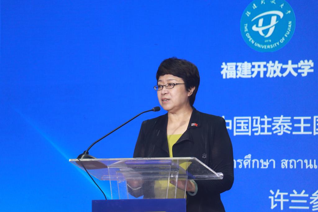 许兰在致辞中充分肯定福建开放大学在泰国的办学成效,并期待福建开放大学华侨学院东盟-曼谷学习中心积极开拓在线教育合作新领域,为中泰关系的发展贡献更多智慧和力量。