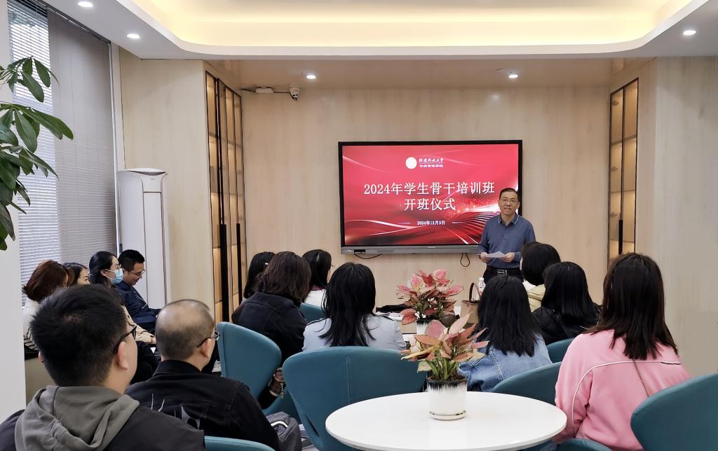 学院党总支书记、院长黄庆安出席培训并作开班致辞。他对过去一年来学院学生干部的工作给予肯定,对2024年秋季新成员的加入表示欢迎。他向参训学生提出三点希望,一要勤学善思。学生干部正处在长本事、长才干的大好时期,要不断学习新思想,充实新知识,紧跟时代步伐,积极应对挑战,努力成为新时代服务社会发展的有用之才。二要学以致用。学生干部要将理论与实践相结合,通过参加各项学生活动,提升自身的综合素质和服务能力。三要勇当先锋。学生干部要敢于挑战,勇于争先,发挥模范带头作用,带动全院学生的学习风气,推动学院各项工作的顺利开展。