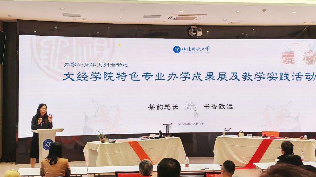 文经学院特色专业办学成果展及教学实践活动圆满落幕。“茶韵悠长,书香致远”,让我们带着这份茶香墨韵,怀揣对特色专业办学的深情祝福,对美好未来的无限憧憬,携手并进,在知识的旅途中,遇见更好的自己,共同谱写有特色高质量福建开放大学建设的辉煌新篇。