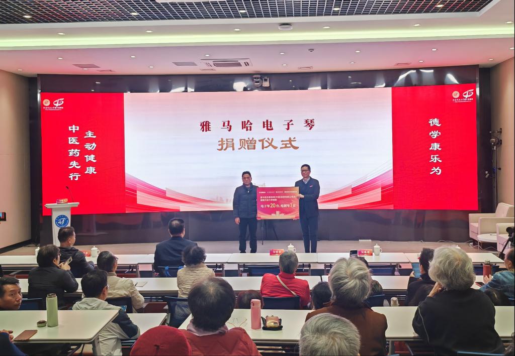 活动现场还举办了国家老年大学福建分部社会捐赠交接仪式。福州金麦克乐器有限公司向国家老年大学福建分部交接了捐赠乐器雅马哈电子琴20台、电钢琴1套,将用于老年声乐课堂建设。