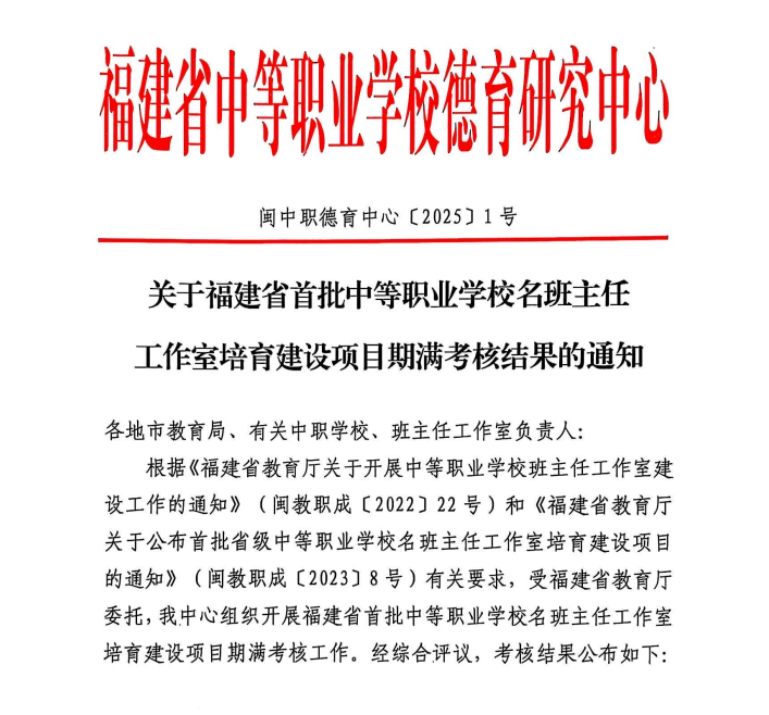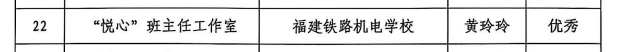 近日,在福建省首批中职学校名班主任工作室培训建设项目验收中,我校黄玲玲老师主持的“悦心”班主任工作室以考核“优秀”的佳绩,顺利通过验收,标志着学院在班主任队伍建设和教育教学创新方面取得了阶段性的重大成果。