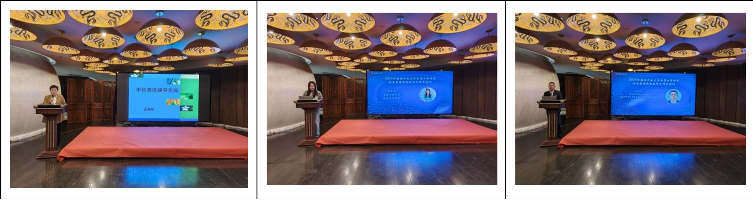 研讨会专题报告环节,省校英语教学团队的三位教师分别就英语智慧教改、课程思政建设、教学团队建设等议题作专题报告。王小红介绍了过去三年人工智能赋能英语教学改革试点取得的经验,同时从全省教学实践角度,用详细的统计数据对不同地区的学位英语成绩进行了分析。陈晴分享了本科公共英语智慧教改考核说明,详细阐述了教学改革的五大方面,同时就人文英语教学团队的建设情况进行了总结。韩瑞峰介绍了公共英语课程思政教学名师工作室的建设情况及近年公共英语教学团队对课程思政的探索,同时对专科公共英语智慧教改考核进行了说明。交流研讨环节,参会教师结合当地办学实际,就推动以赛促学、公共英语智慧教学改革方案、课程思政建设、课程团队建设、教师职业发展等进行了深入的研讨。