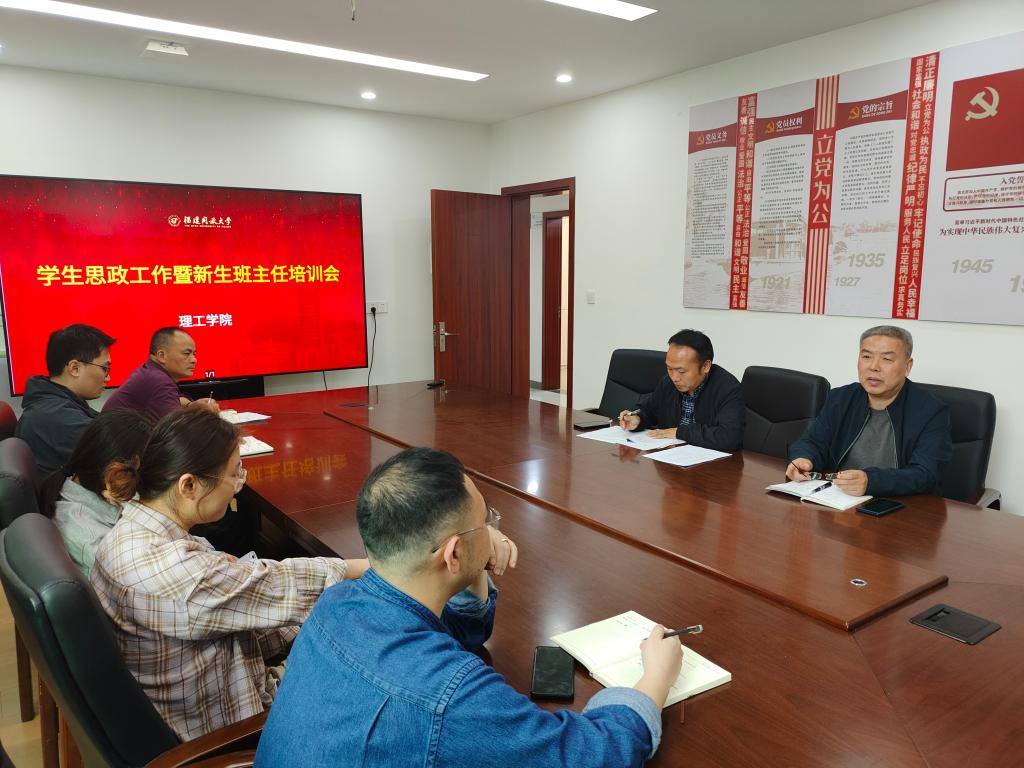为贯彻落实习近平总书记在全国教育大会上的重要讲话精神,进一步深化“12335”成人大学生思政工作模式,4月8日上午,理工学院召开2025年春季新学期学生思政工作暨新生班主任培训会议,学院领导及全体专兼职班主任参加。会议由副院长章学珠主持。