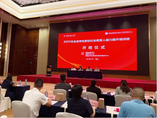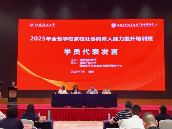 7月3日上午,由福建省教育厅主办、福建开放大学和福建省学校家庭教育指导服务中心承办的2025年“福建省学校家校社协同育人能力提升培训班”开班典礼在福州召开。来自全省各地的幼儿园园长、中小学校长共199人参加此次培训。