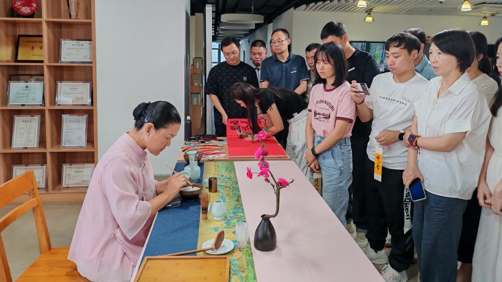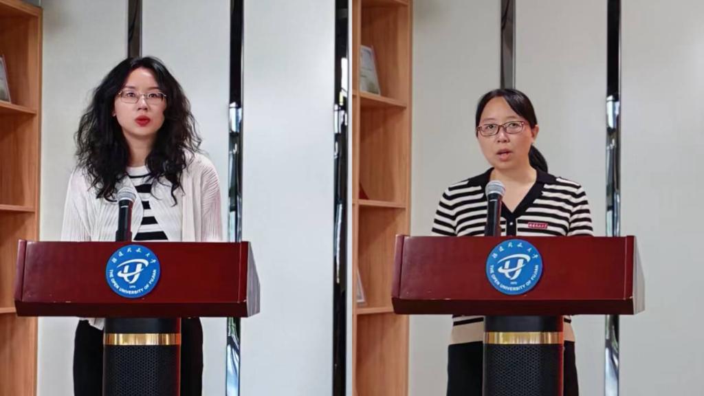 财经与管理系主任陈小梅、中文与法律系主任黄姗进行了专业介绍,阐述了学院各专业的特色、课程设置、发展前景等内容,让新生们对自己所学专业有了更深入的了解。新生代表、网络与新媒体本科张绿荫同学分享了自己在开放大学的求学经历以及对未来学习生活的展望,她鼓励同学们坚持在终身学习的道路上走下去,努力汲取知识的养分,为实现人生梦想、创造更美好未来而努力奋斗。此外,张绿荫、陈晓静两位同学还带来“宋代点茶”技艺展示,她们以茶为纸、以水为墨,于茶面上勾勒出“福开”二字,让师生直观感受中华传统文化之美,以及非遗传统技艺在新时代焕发的新生命力。