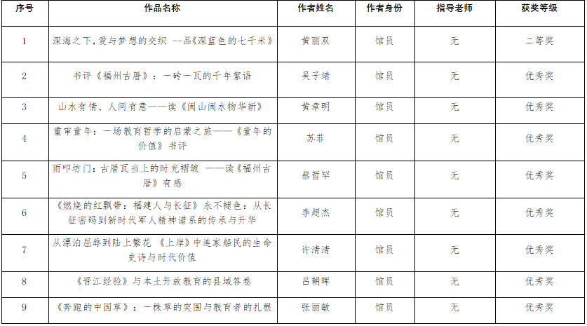 图书馆高度重视、精心筹备,依托馆藏资源及闽版好书书目,组织开展系列阅读推广活动,包括闽版好书读书分享会、“光影映廉・书韵传心”主题观影、党员领读闽版好书以及常态化的图书、电影、音乐分享会等,全方位深化学生对闽版好书的认知,激发写作热情。同时,通过图书馆官网、微信公众号、读者交流群、线下读书会等多渠道进行宣传,并联动学生社团、班级及社交平台扩大影响力,有效提升了师生参与度。经校内选拔,共征集有效书评81篇,经专家评审与指导,择优推荐17篇作品至省赛,最终全部获奖。