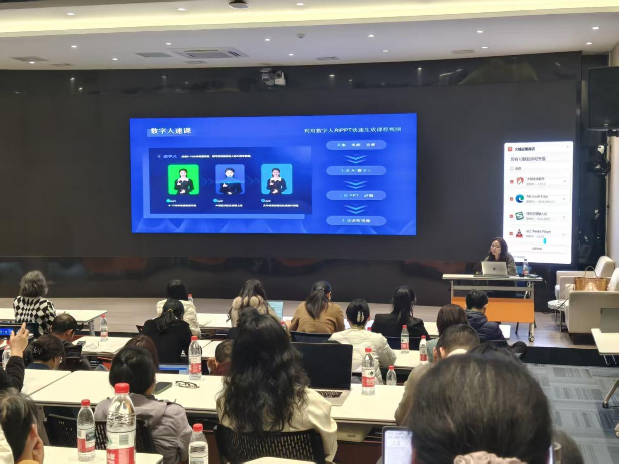 培训过程中,与会教师认真聆听、积极互动,就教材章节上传、数字人形象定制、AI实践任务设计等实际教学问题展开交流。