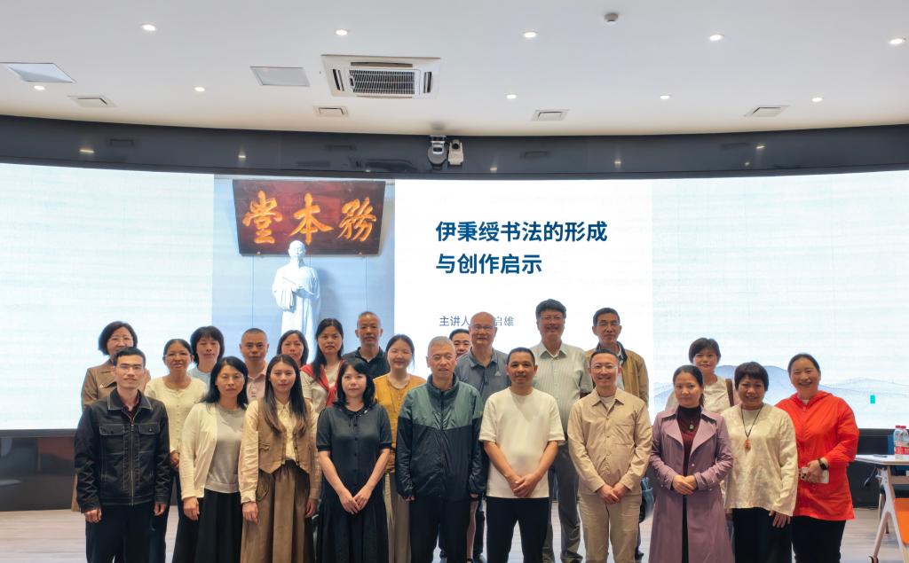 上午,马启雄老师以《伊秉绶书法的形成与创作启示》为题,从伊秉绶的生平经历、理学修养切入,系统梳理了其隶书风格的演变轨迹与独特艺术语言的形成过程,为师生呈现了伊秉绶“朴茂敦穆、恢廓高邈”的书风特质,并深入阐述了其对当代书法创作的启示意义。