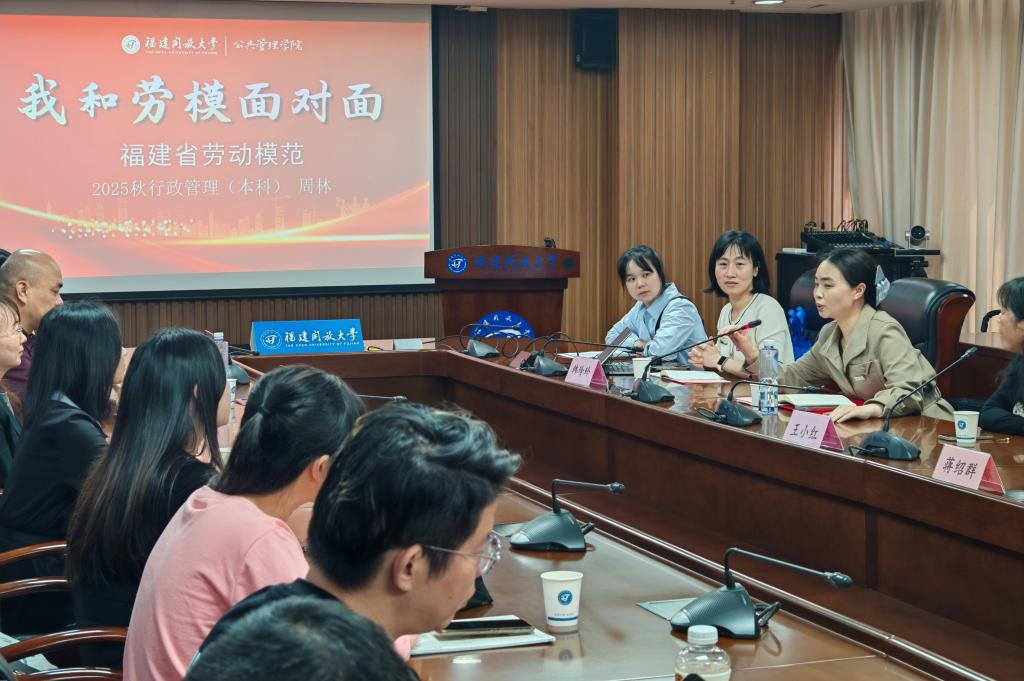 为充分发挥榜样示范作用,本次活动特设“我和劳模面对面”环节。活动特邀福建省劳动模范、2025年秋季行政管理本科班学生周林分享学习成长故事。结合自身基层工作经历与在职求学心得。周林以质朴通俗的语言,讲述了自己扎根平凡岗位、坚守初心使命、锤炼专业能力、深耕社会服务的奋斗历程,并寄语全体新生:求学无捷径,笃行方致远,每一次坚持、每一份付出,终将成为成长路上的底气。鲜活真实的奋斗故事催人奋进,让在场新生备受鼓舞。