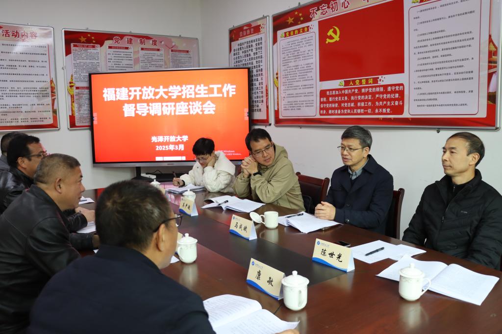 党委副书记马成斌赴莆田开放大学、南平开放大学、仙游开放大学、邵武开放大学和光泽开放大学开展调研。副校长吴建铭赴福建开放大学三明学院、大田开放大学、宁化开放大学和建宁开放大学开展调研。副校长李正光赴漳州开放大学、漳浦开放大学和云霄开放大学开展调研。纪委书记李琳到屏南开放大学、古田开放大学开展调研。