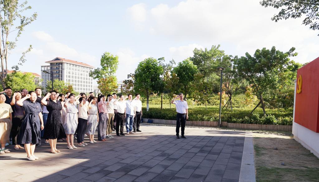 誓言铭初心,砥砺奋进担当。活动的最后环节,全体青年移步至省委党校宣誓台,面向鲜红的党旗,在马成斌的带领下,重温入党誓词。在党的104周年生日这一特殊时刻,铿锵有力的誓言响彻宣誓台,既是对初心使命的深情回望,更是对奋进未来的庄严承诺。大家纷纷表示,重温誓词让心灵再次受到深刻洗礼,更加坚定了为共产主义事业奋斗终身的理想信念。